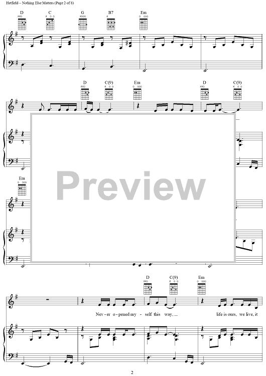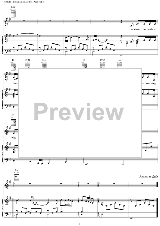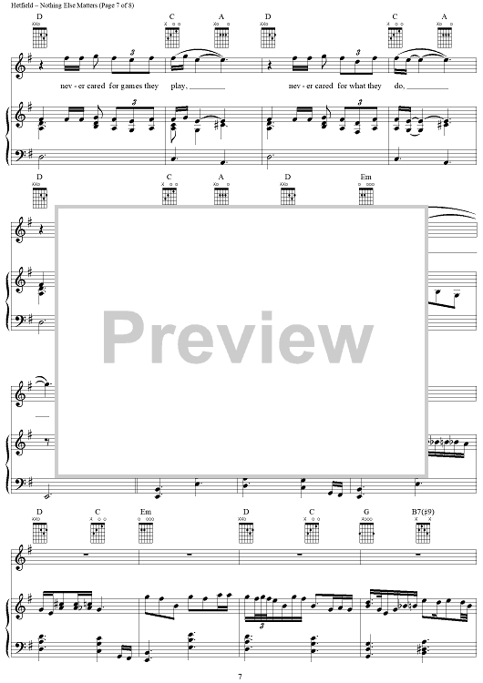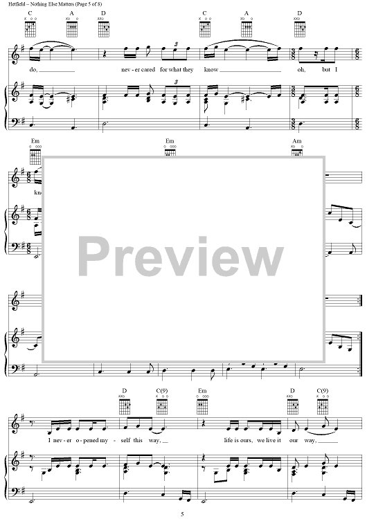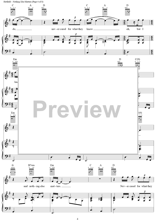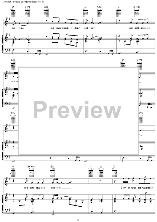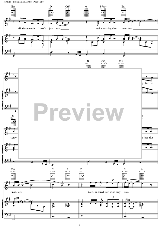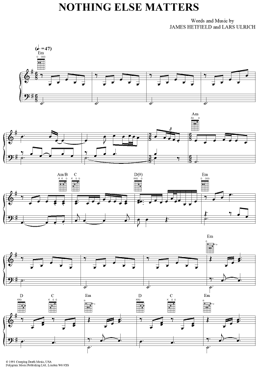 Digital Sheet Music for Nothing Else Matters by Metallica, James Hetfield, Lars Ulrich scored for Piano/Vocal/Chords; id:366107