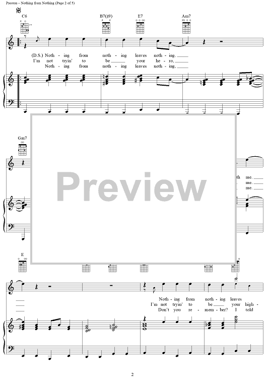 Digital Sheet Music for Nothing From Nothing by Billy Preston, Bruce Fisher scored for Piano/Vocal/Chords; id:367431