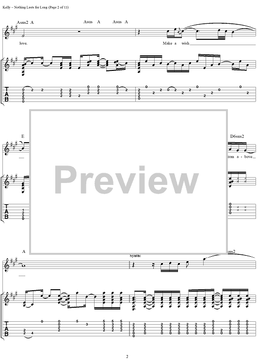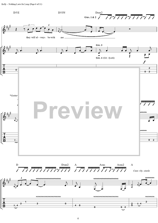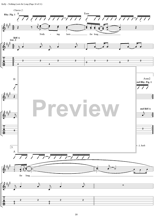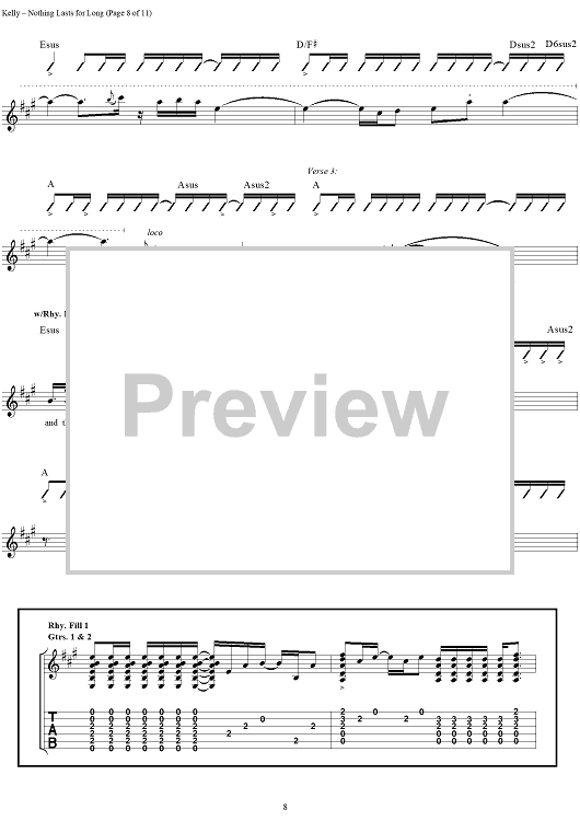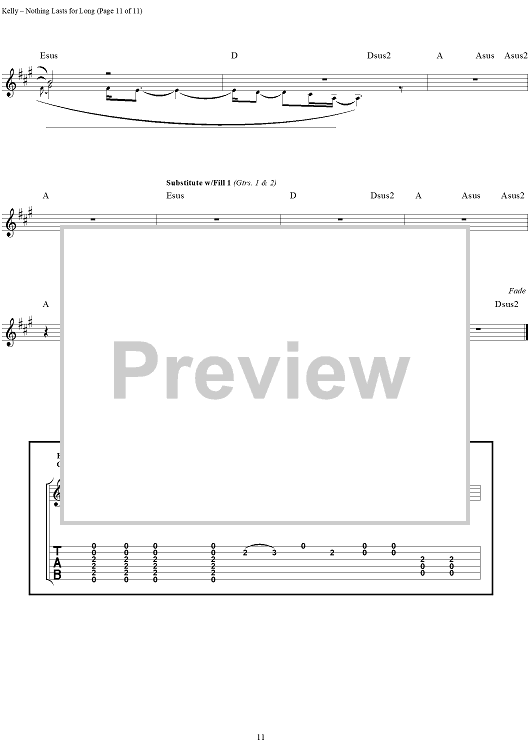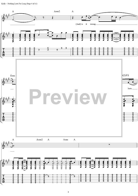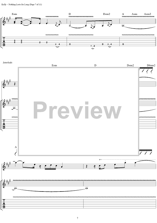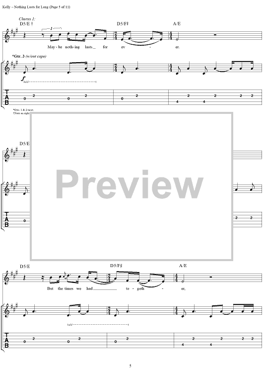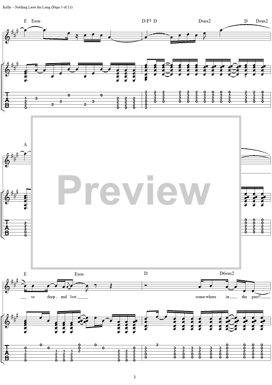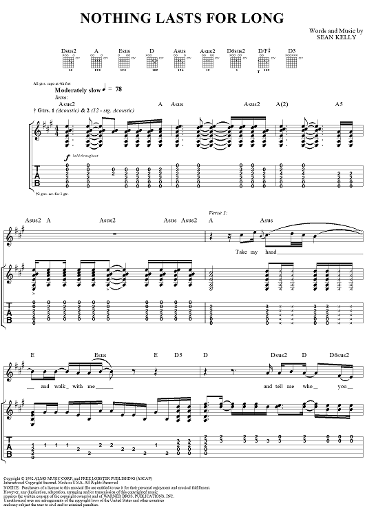 Digital Sheet Music for Nothing Lasts For Long by The Samples, Sean Kelly scored for Guitar Tab/Vocal; id:249988