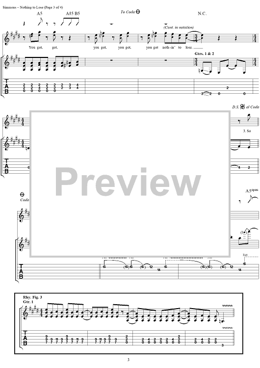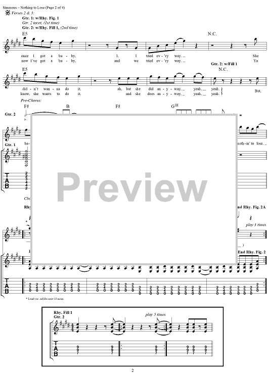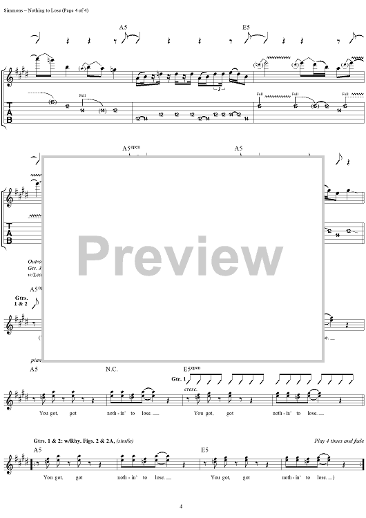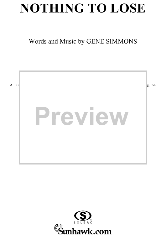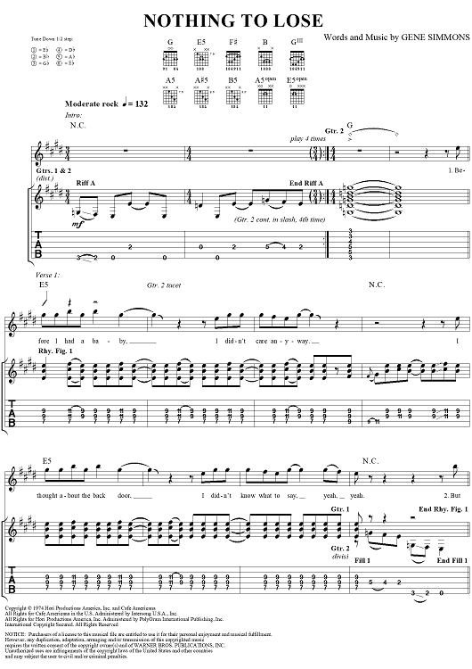 Digital Sheet Music for Nothing to Lose by Gene Simmons, KISS scored for Guitar Tab/Vocal; id:206960