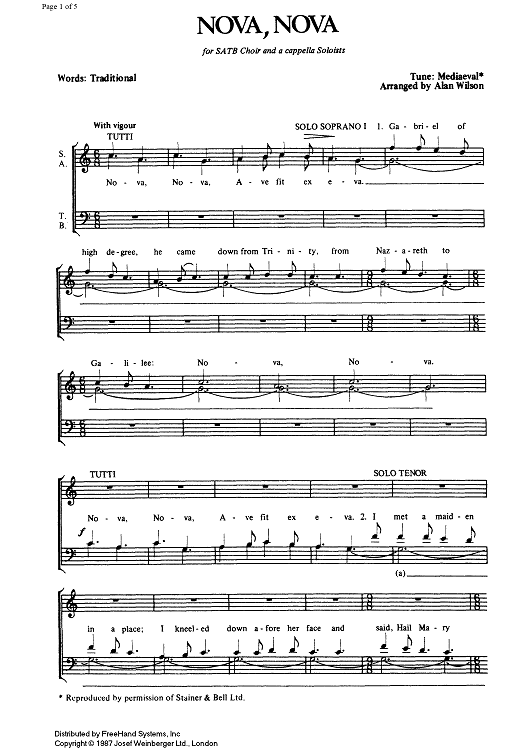 Digital Sheet Music for Nova, Nova by Alan Wilson, Traditional scored for SATB Choir; id:337497