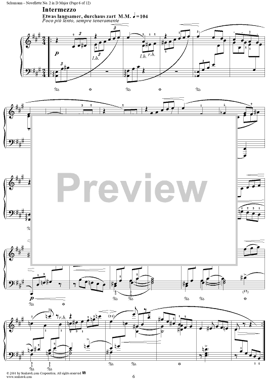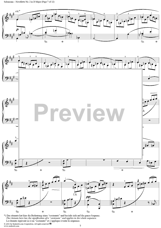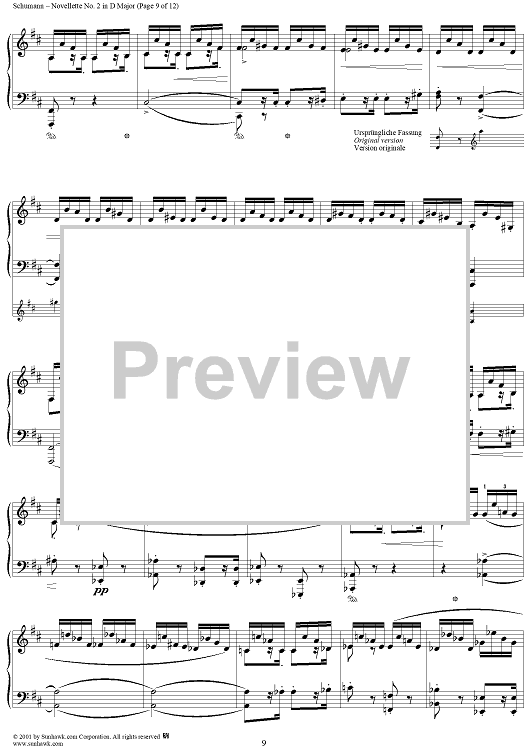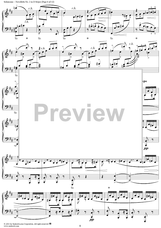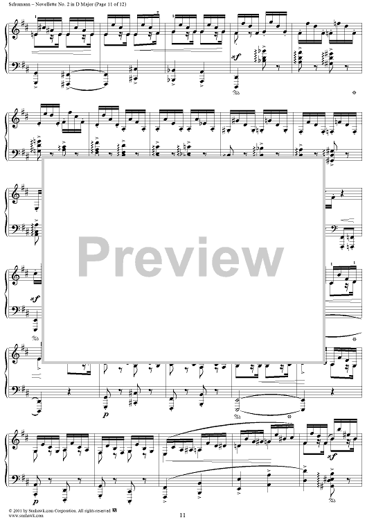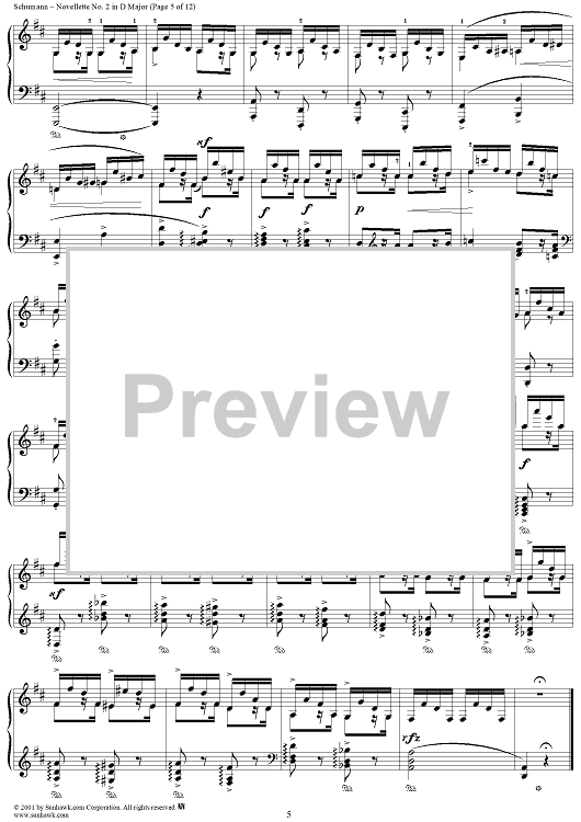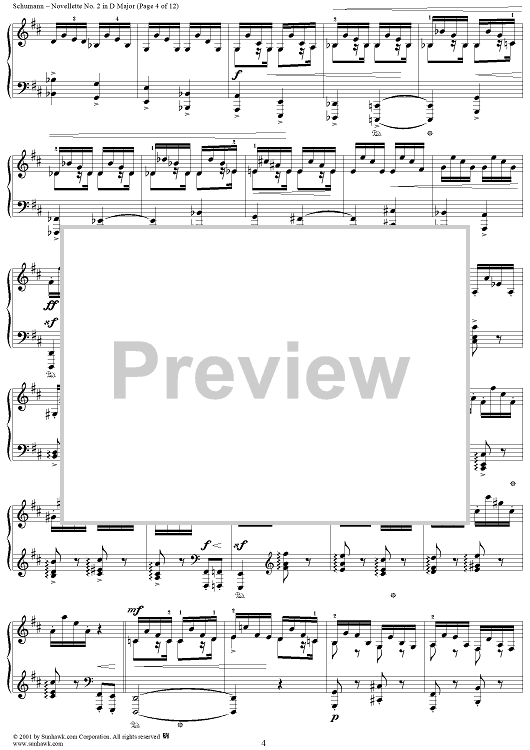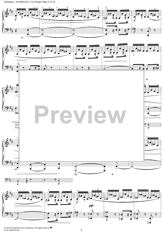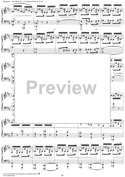 Digital Sheet Music for Novellette No. 2 in D Major, from "Novelletten", Op. 21 by Robert Schumann scored for Piano Solo; id:258344