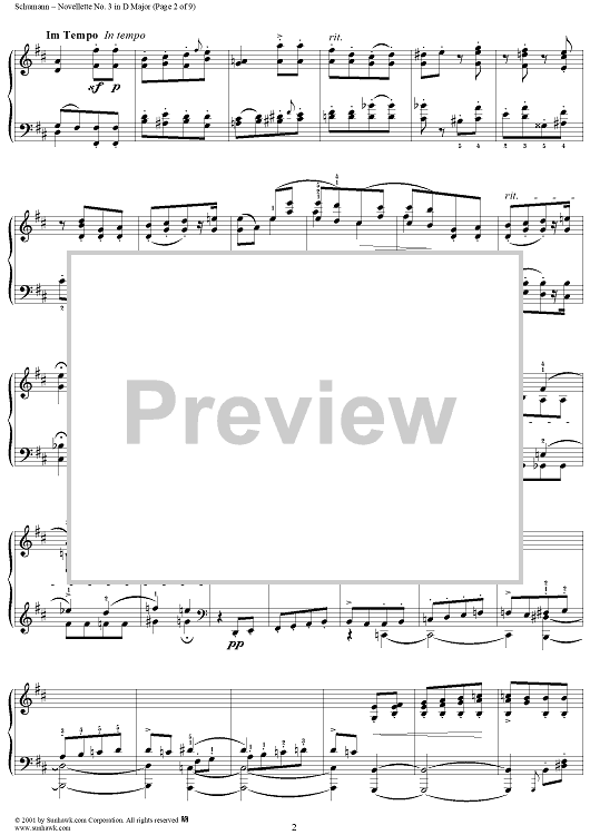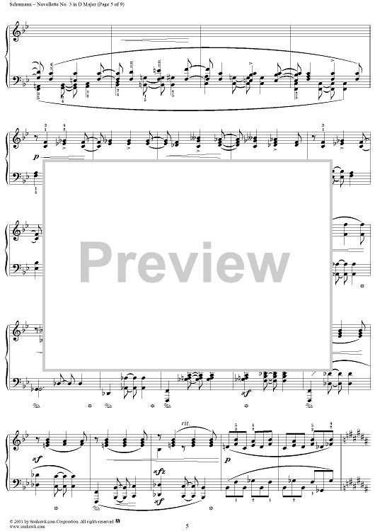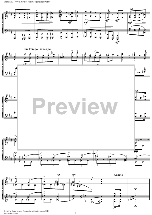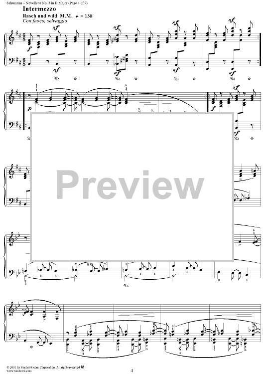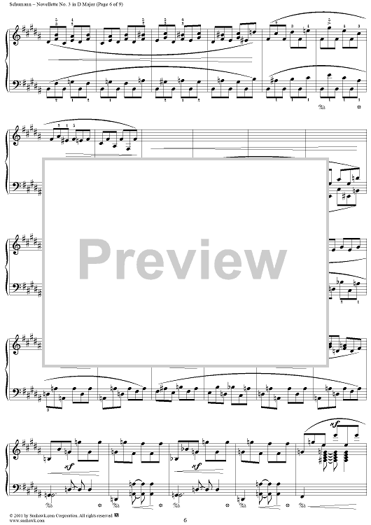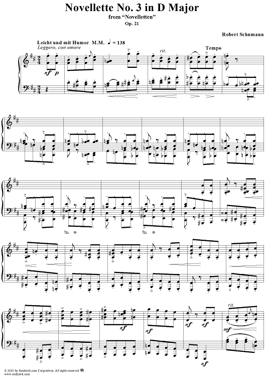 Digital Sheet Music for Novellette No. 3 in D Major, from "Novelletten", Op. 21 by Robert Schumann scored for Piano Solo; id:258345