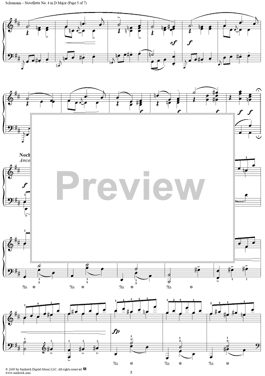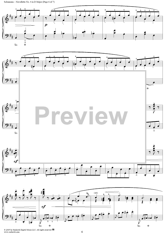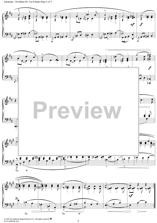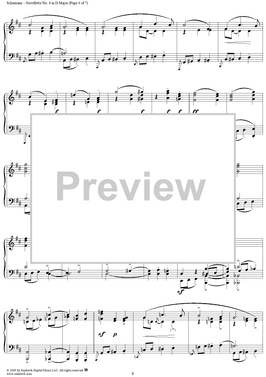 Digital Sheet Music for Novellette No. 4 in D Major, from "Novelletten", Op. 21 by Robert Schumann scored for Piano Solo; id:307808