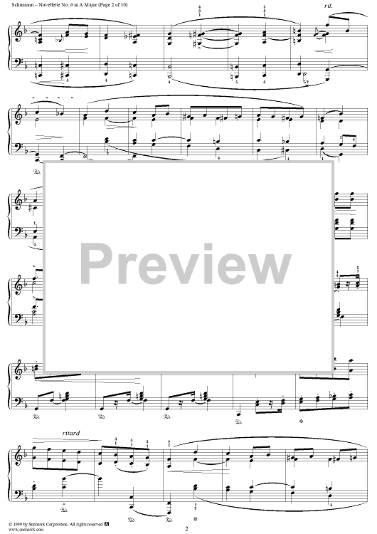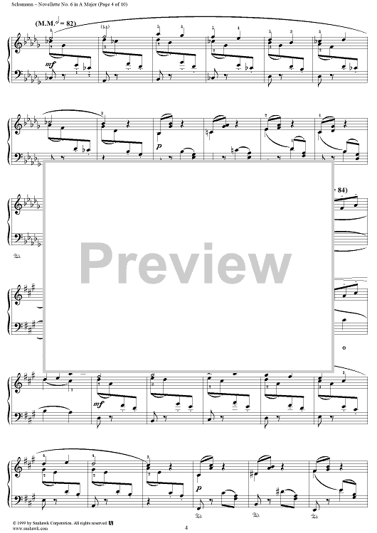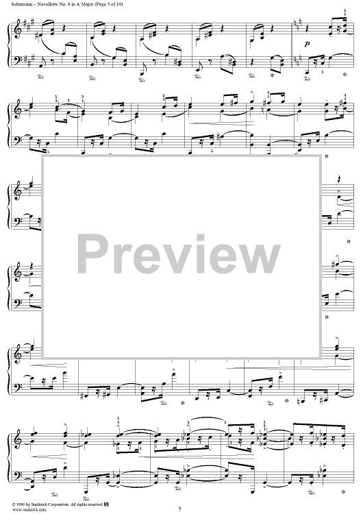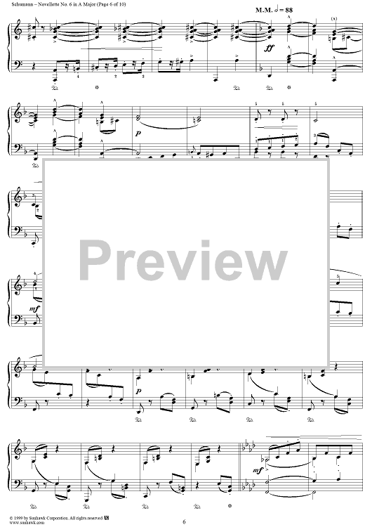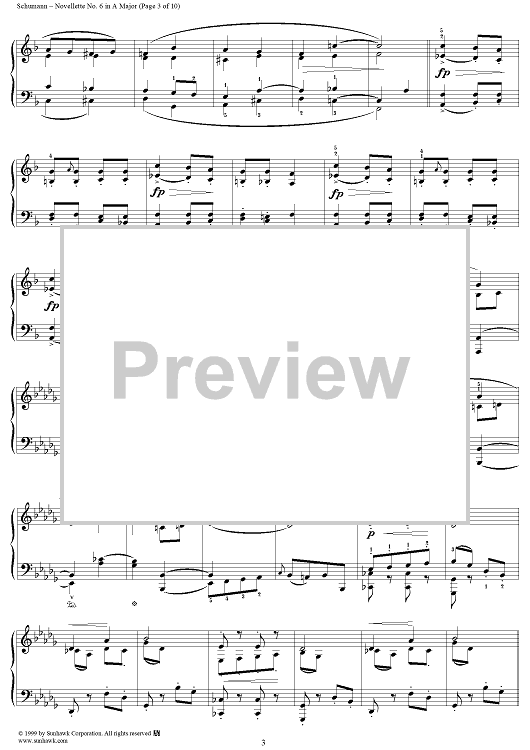 Digital Sheet Music for Novellette No. 6 in A Major, from "Novelletten", Op. 21 by Robert Schumann scored for Piano Solo; id:258347