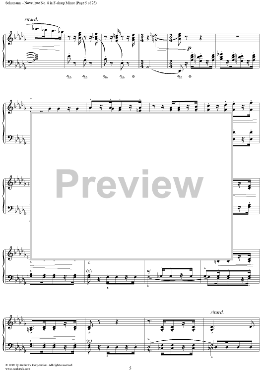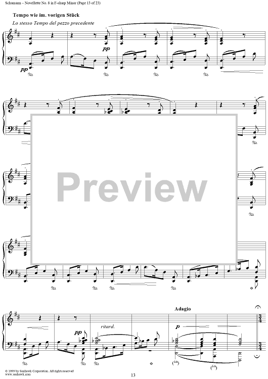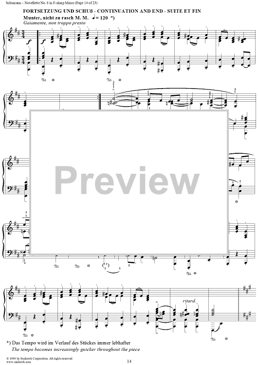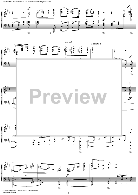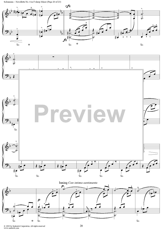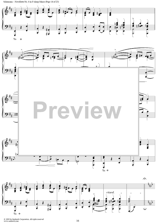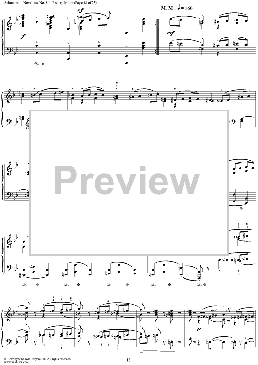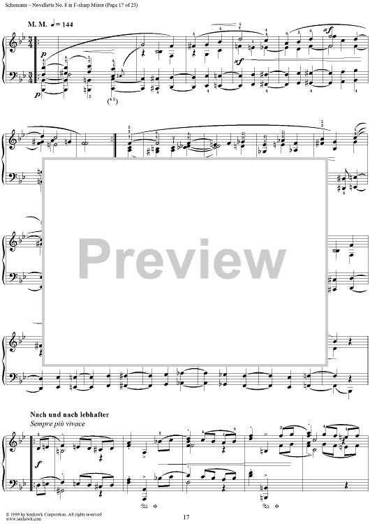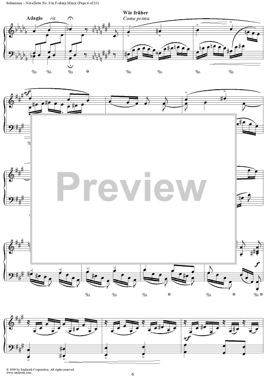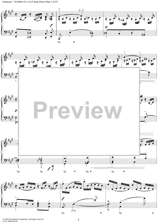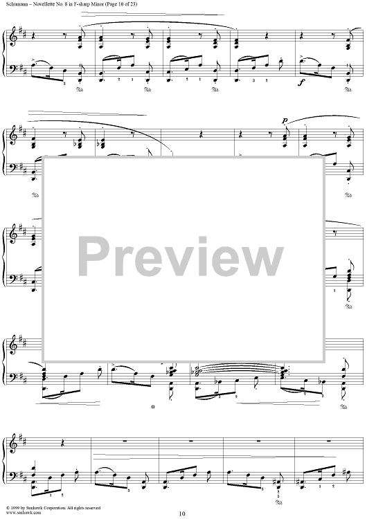 Digital Sheet Music for Novellette No. 8 in F-sharp Minor/D Major, from "Novelletten", Op. 21 by Robert Schumann scored for Piano Solo; id:258369