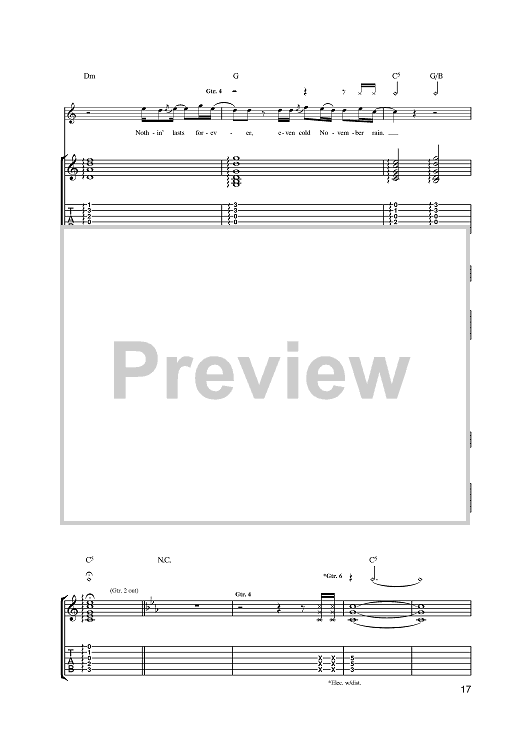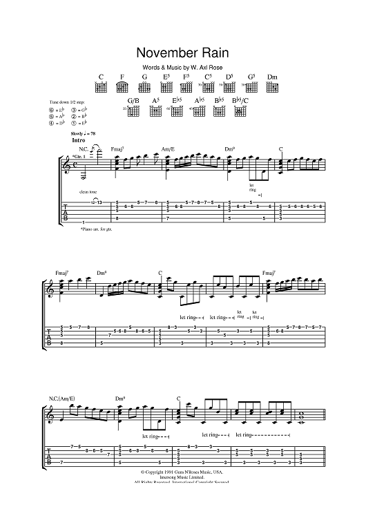 Digital Sheet Music for November Rain by W. Axl Rose, Guns N' Roses scored for Guitar Tab; id:396182