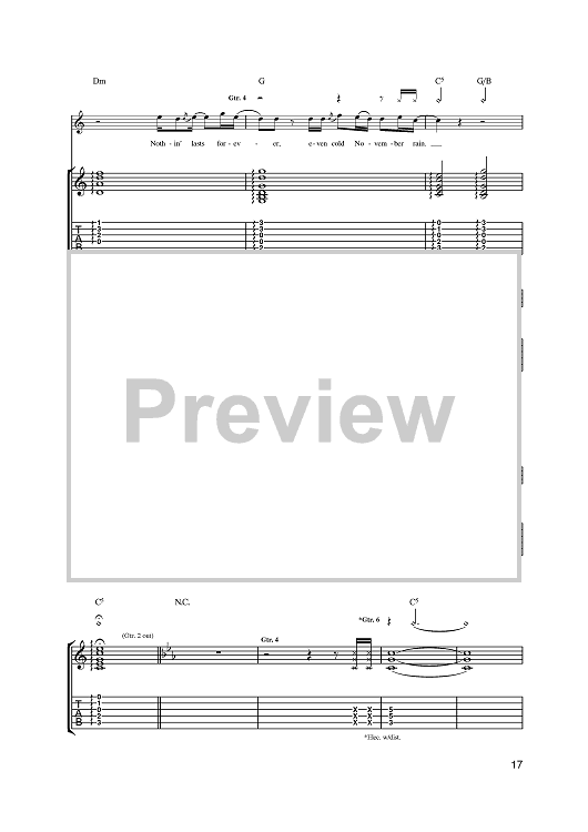 Digital Sheet Music for November Rain by W. Axl Rose, Guns N' Roses scored for Guitar Tab; id:396183