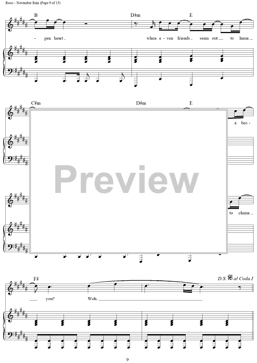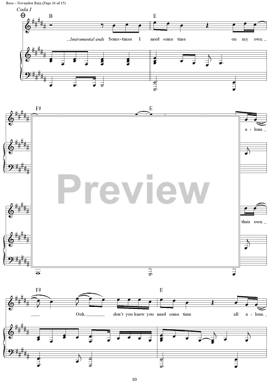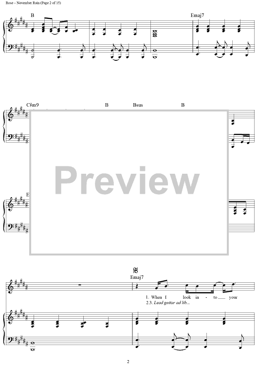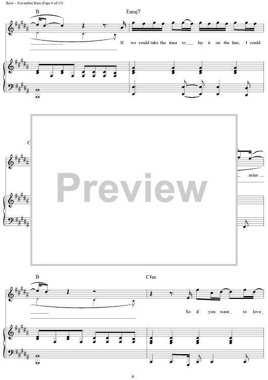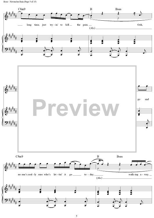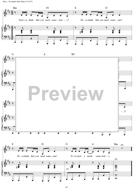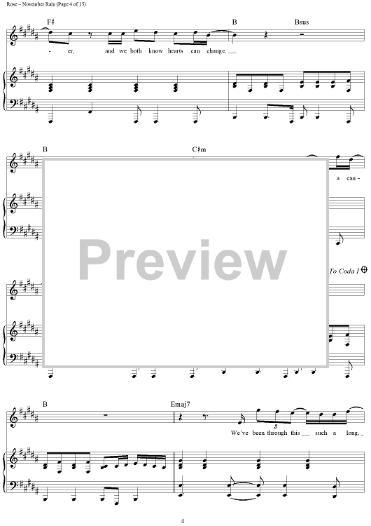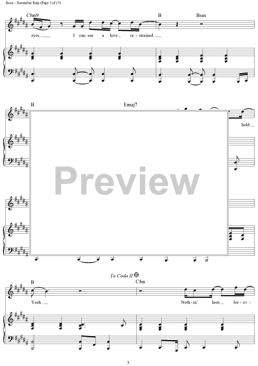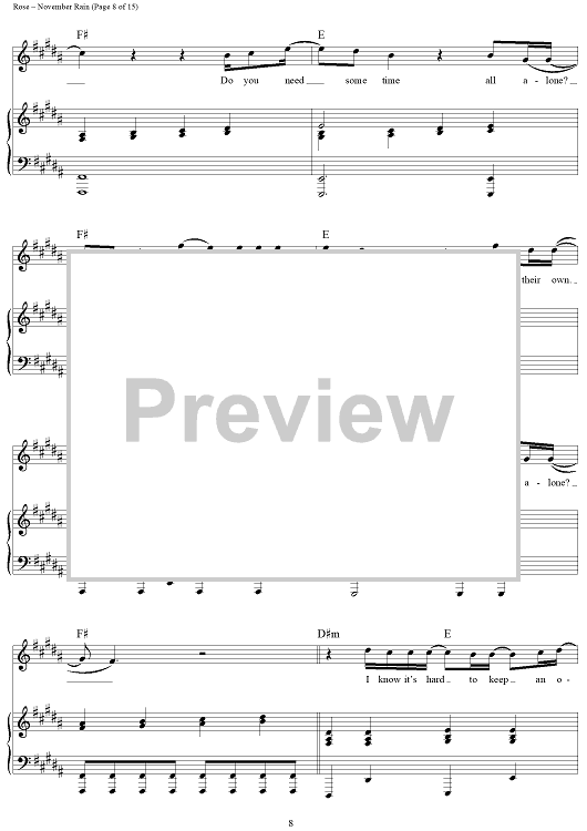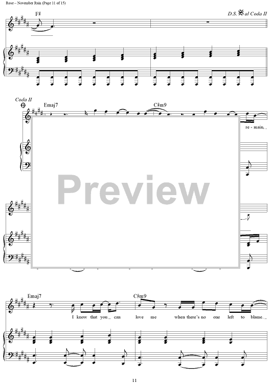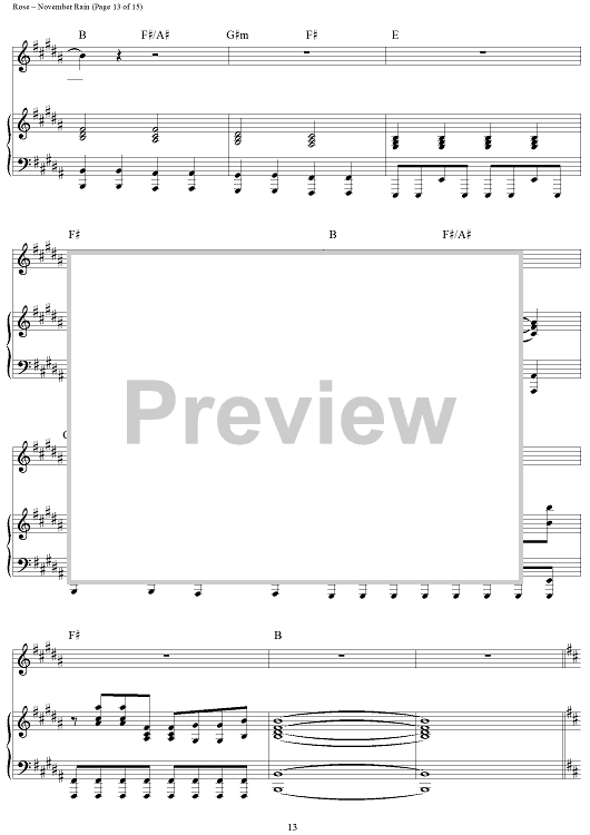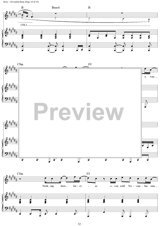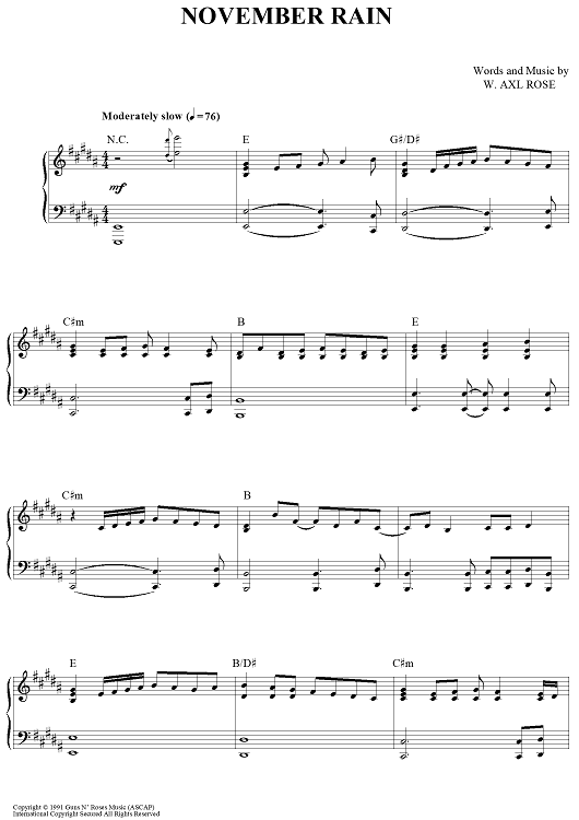 Digital Sheet Music for November Rain by W. Axl Rose, Guns N' Roses scored for Piano/Vocal/Chords; id:459966