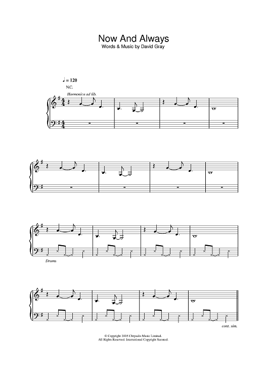 Digital Sheet Music for Now And Always by David Gray scored for Piano/Vocal/Chords; id:386344