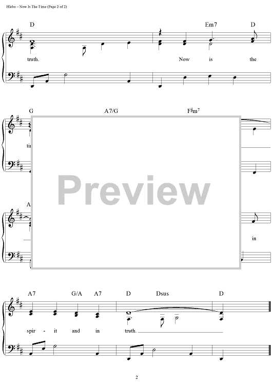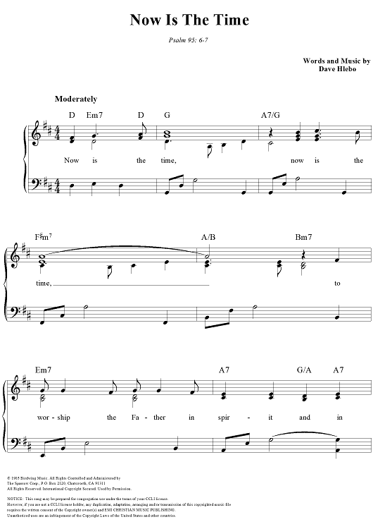 Digital Sheet Music for Now Is the Time by Dave Hlebo scored for Piano/Vocal/Chords; id:112107