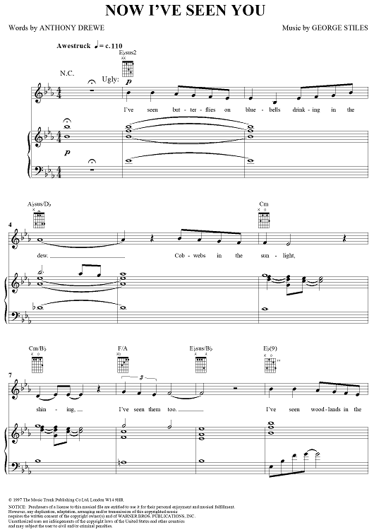 Digital Sheet Music for Now I've Seen You by George Stiles, Anthony Drewe scored for Piano/Vocal/Chords; id:295087