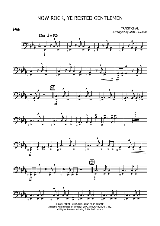 Digital Sheet Music for Now Rock, Ye Rested Gentlemen - Bass by Traditional, Mike Smukal scored for Jazz Ensemble; id:358263