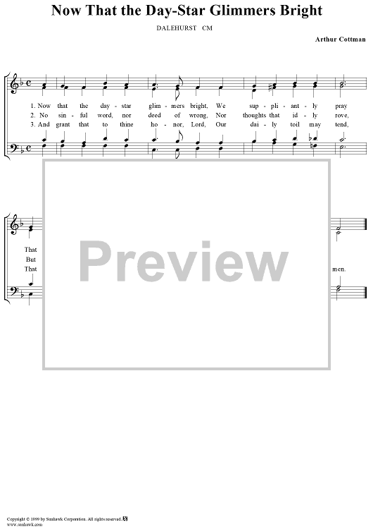 Digital Sheet Music for Now That the Day-Star Glimmers Bright by Arthur Cottman scored for Four-part Mixed Chorus; id:118172