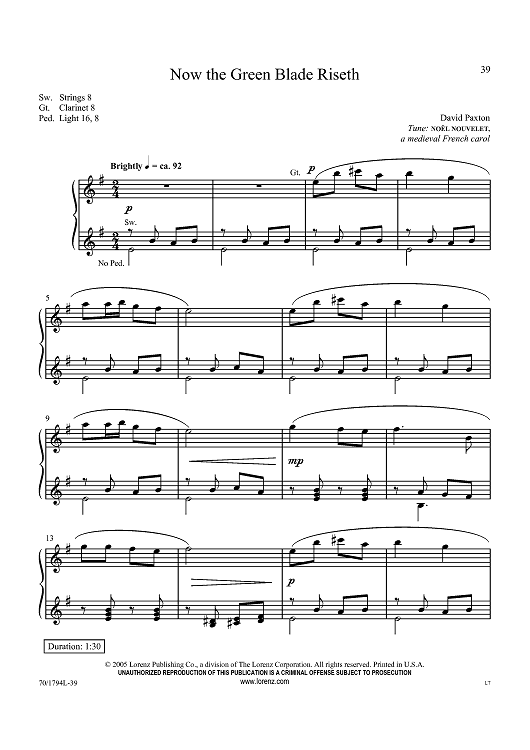 Digital Sheet Music for Now the Green Blade Riseth by French Carol, David Paxton scored for Organ Solo; id:437769
