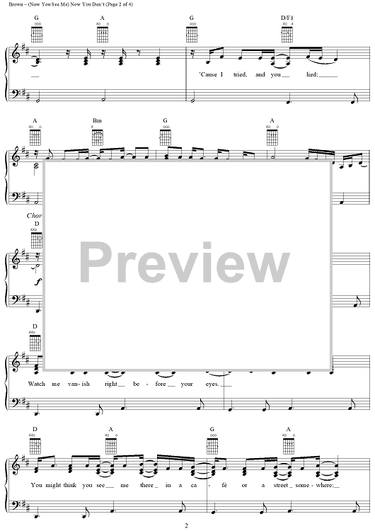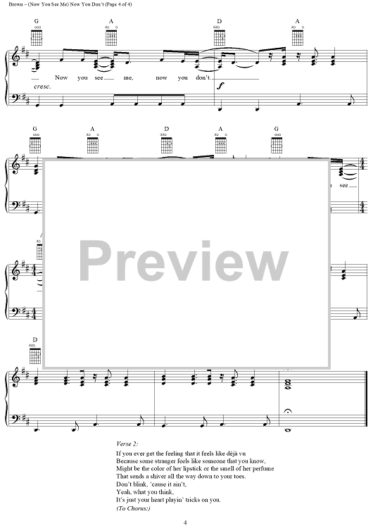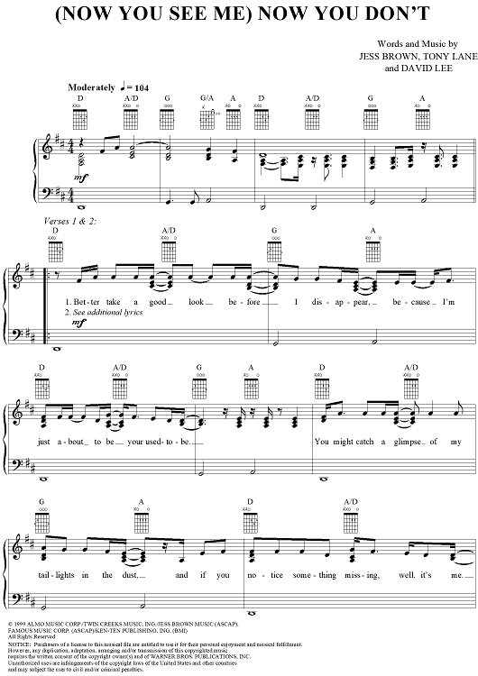 Digital Sheet Music for (Now You See Me) Now You Don't by Jess Brown, Lee Ann Womack, David Lee, Tony Lane scored for Piano/Vocal/Chords; id:118763