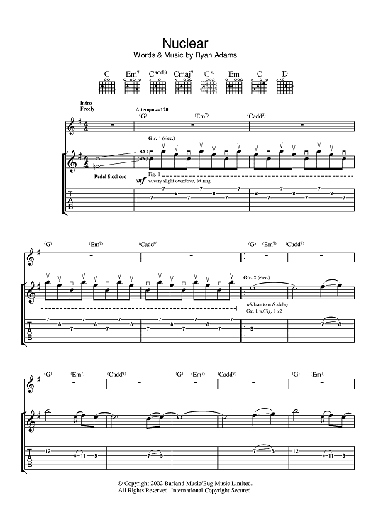 Digital Sheet Music for Nuclear by Ryan Adams scored for Guitar Tab; id:377945