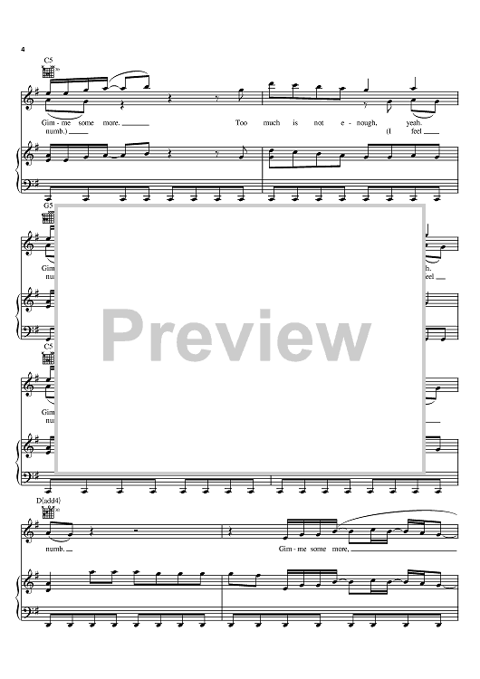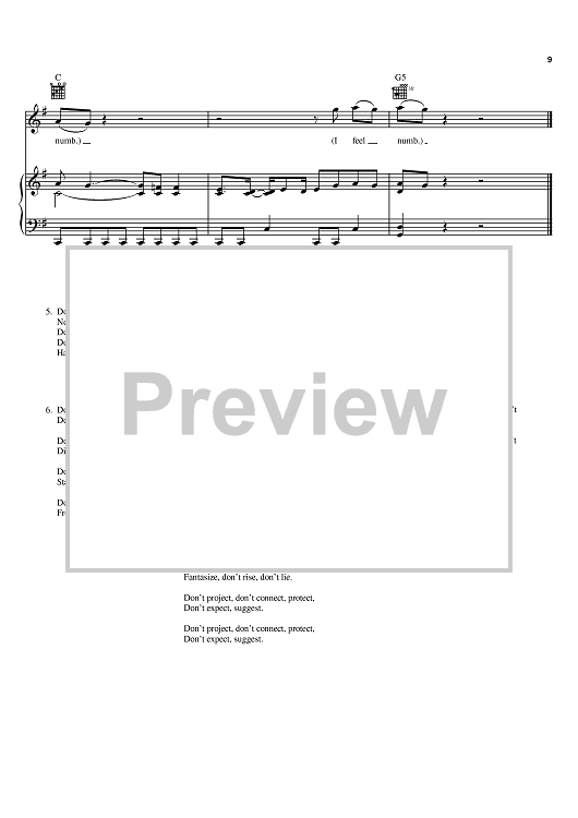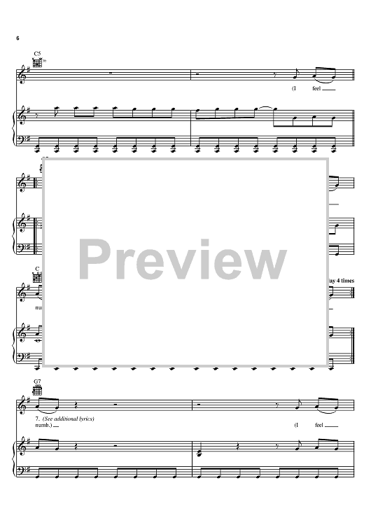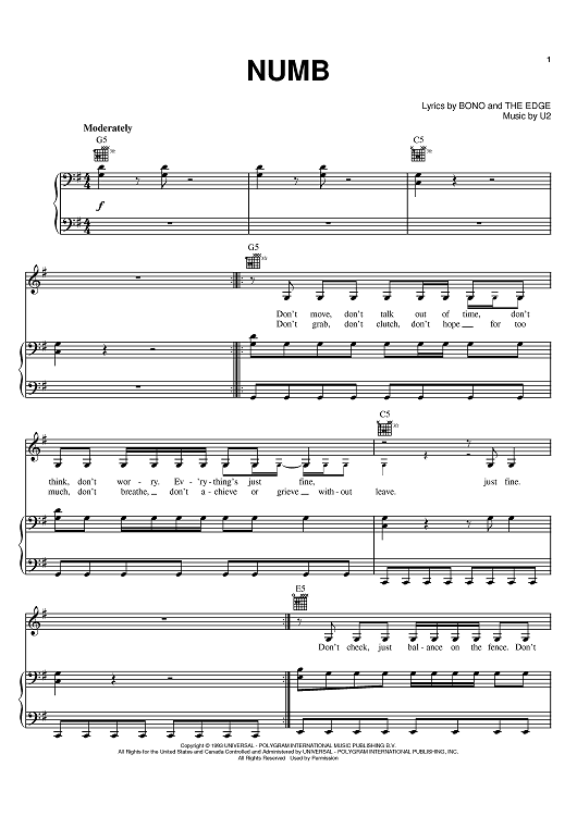Digital Sheet Music for Numb by U2, Bono, The Edge scored for Piano/Vocal/Chords; id:382006
