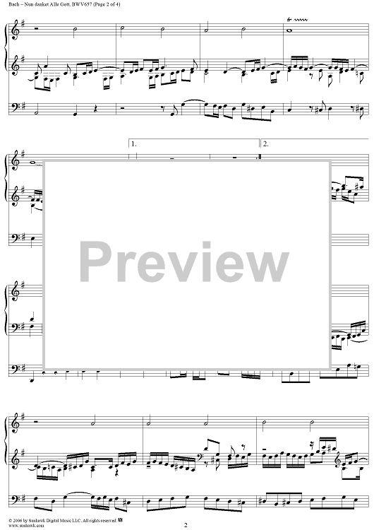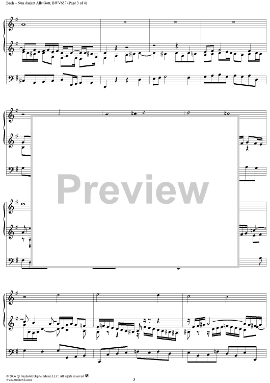 Digital Sheet Music for Nun danket Alle Gott, No. 7 from "18 Leipzig Chorale Preludes", BWV657 by Johann Sebastian Bach scored for Organ Solo; id:319020