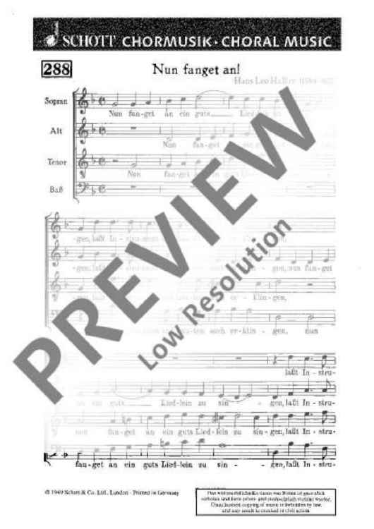 Digital Sheet Music for Nun fanget an ein guts Liedlein zu singen - Choral Score by Hans Leo Hassler scored for Mixed Choir (satb); id:479261