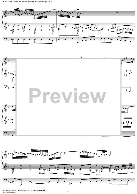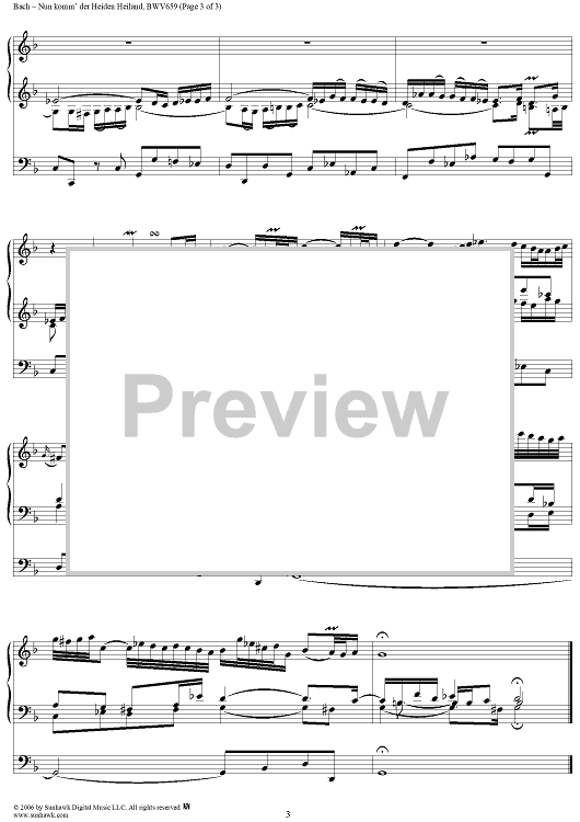 Digital Sheet Music for Nun komm' der Heiden Heiland, No. 9 from "18 Leipzig Chorale Preludes", BWV659 by Johann Sebastian Bach scored for Organ Solo; id:319022