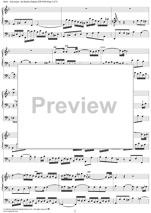 Digital Sheet Music for Nun komm' der Heiden Heiland, trio, No. 10 from "18 Leipzig Chorale Preludes", BWV660 by Johann Sebastian Bach scored for Organ Solo; id:319023