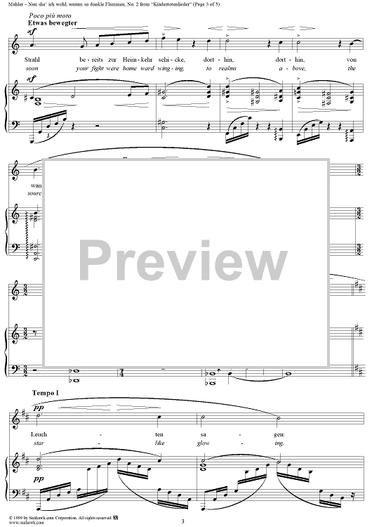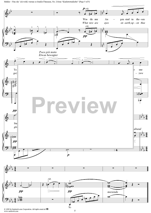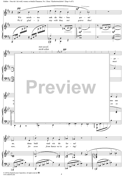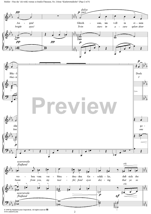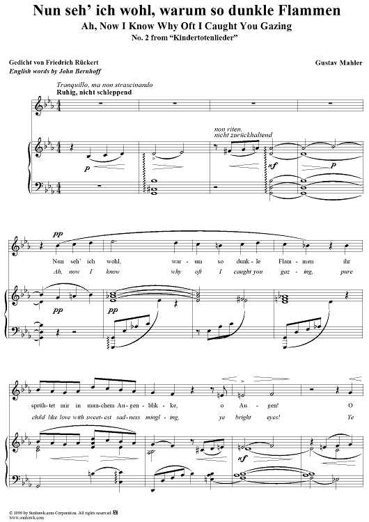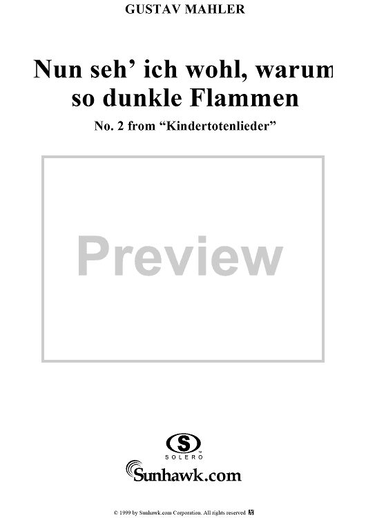 Digital Sheet Music for Nun she' ich wohl, warum so dunkle Flammen - No. 2 From "Kindertotenlieder" by Gustav Mahler, Friedrich Rückert scored for Voice/Piano; id:250932
