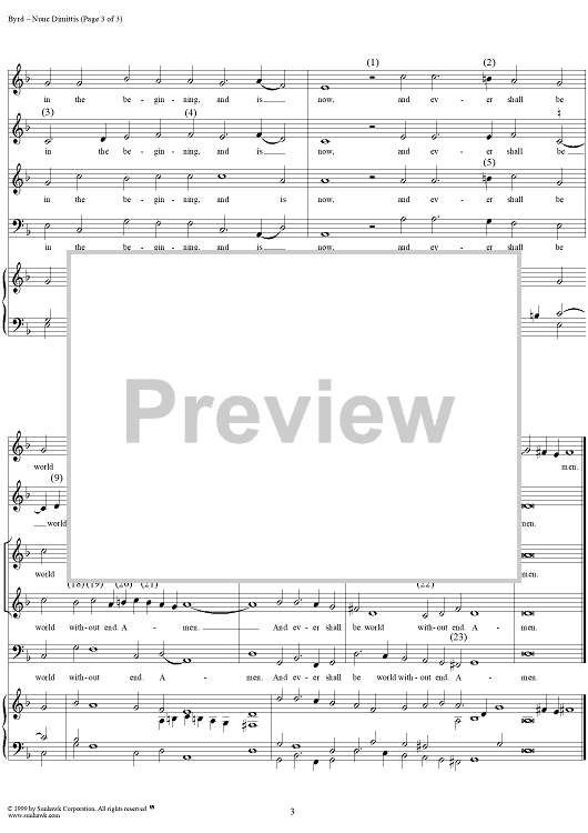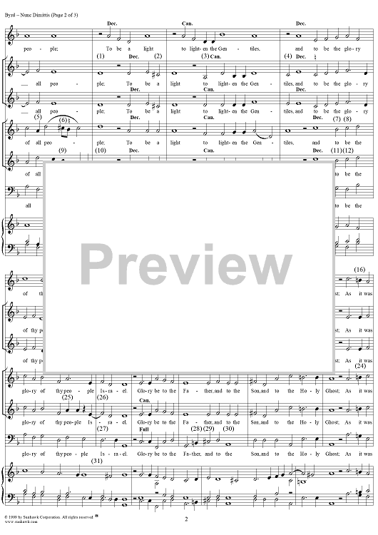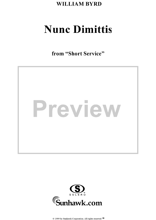 Digital Sheet Music for Nunc Dimittis - No. 9 from "Short Service" by William Byrd scored for Mixed Chorus/Organ; id:273571