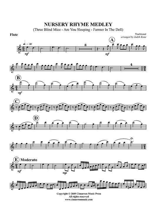 "Nursery Rhyme Medley - Flute" Sheet Music by Traditional