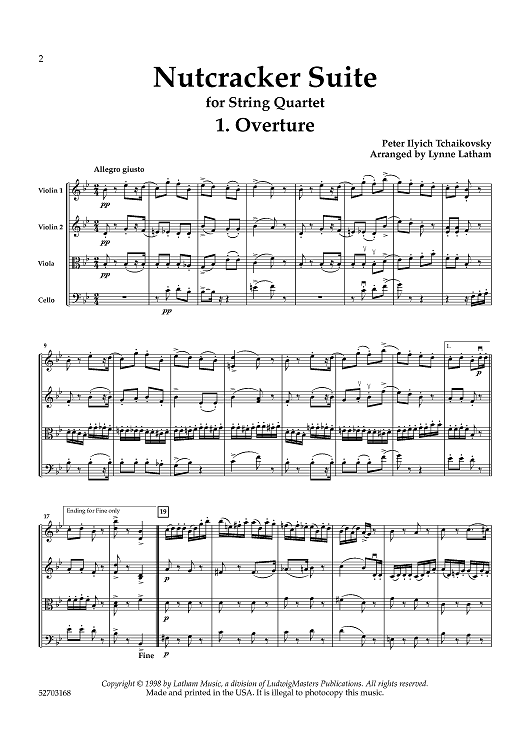 Digital Sheet Music for Nutcracker Suite - Score by Peter Ilyich Tchaikovsky, Lynne Latham scored for String Quartet; id:461026