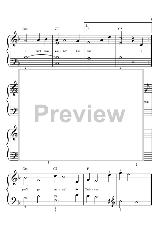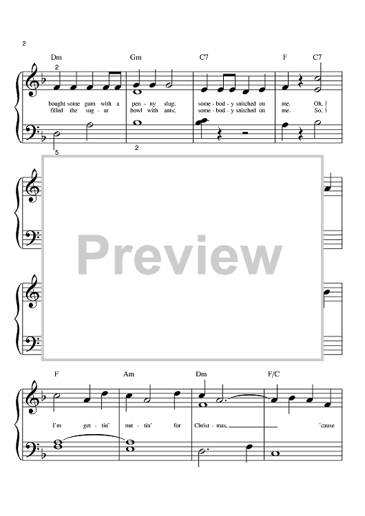 Digital Sheet Music for Nuttin' For Christmas by Sid Tepper, Roy C. Bennett scored for Big Note Piano; id:397925