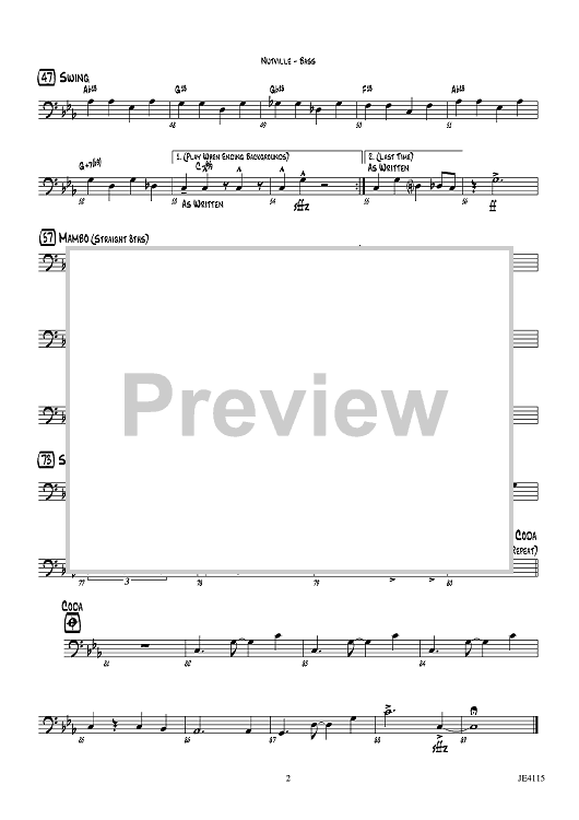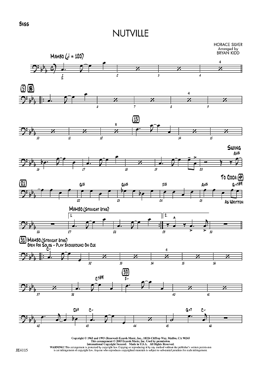Digital Sheet Music for Nutville - Bass by Horace Silver, Bryan Kidd scored for Jazz Ensemble; id:456013