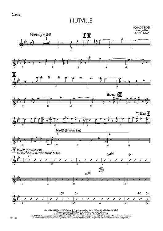 Digital Sheet Music for Nutville - Guitar by Horace Silver, Bryan Kidd scored for Jazz Ensemble; id:456011