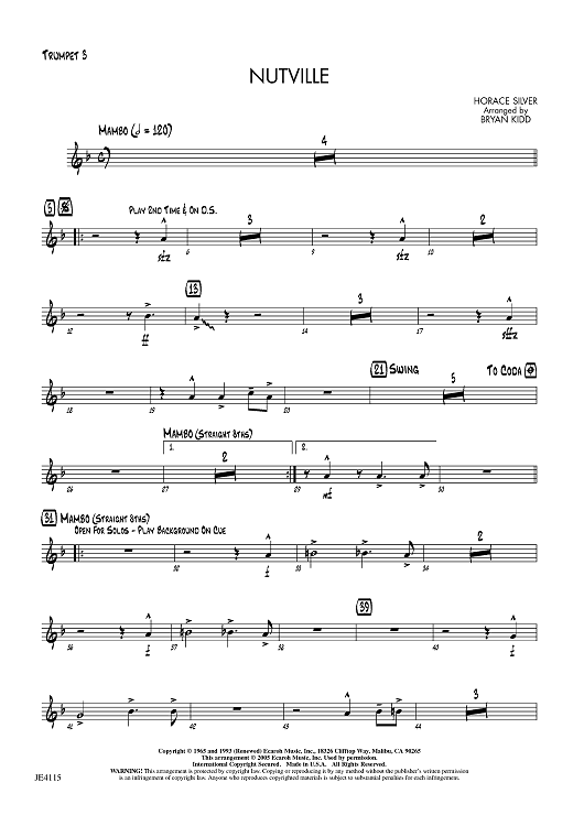 Digital Sheet Music for Nutville - Trumpet 3 by Horace Silver, Bryan Kidd scored for Jazz Ensemble; id:456003