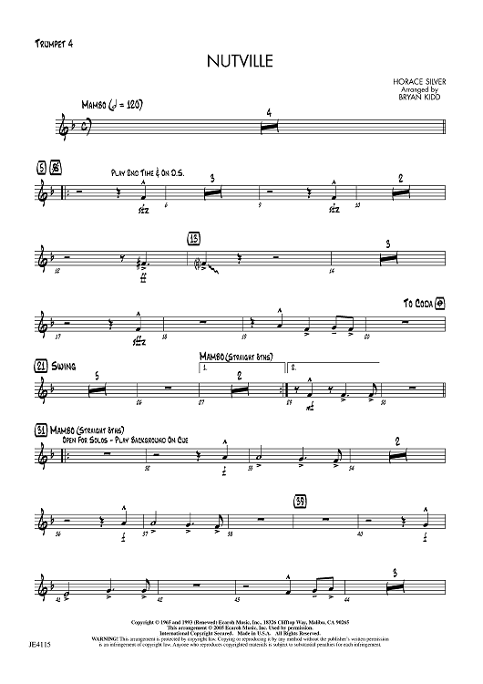 Digital Sheet Music for Nutville - Trumpet 4 by Horace Silver, Bryan Kidd scored for Jazz Ensemble; id:456004