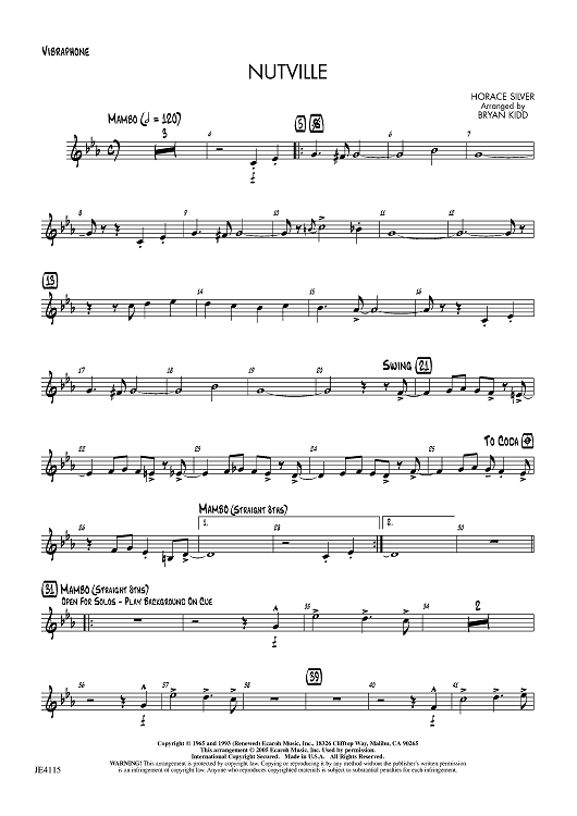 Digital Sheet Music for Nutville - Vibraphone by Horace Silver, Bryan Kidd scored for Jazz Ensemble; id:456009