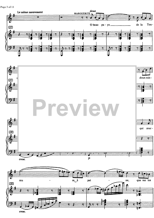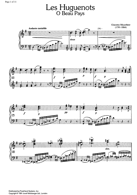 Digital Sheet Music for O Beau Pays from Les Huguenots by Giacomo Meyerbeer scored for Soprano/Piano; id:332347