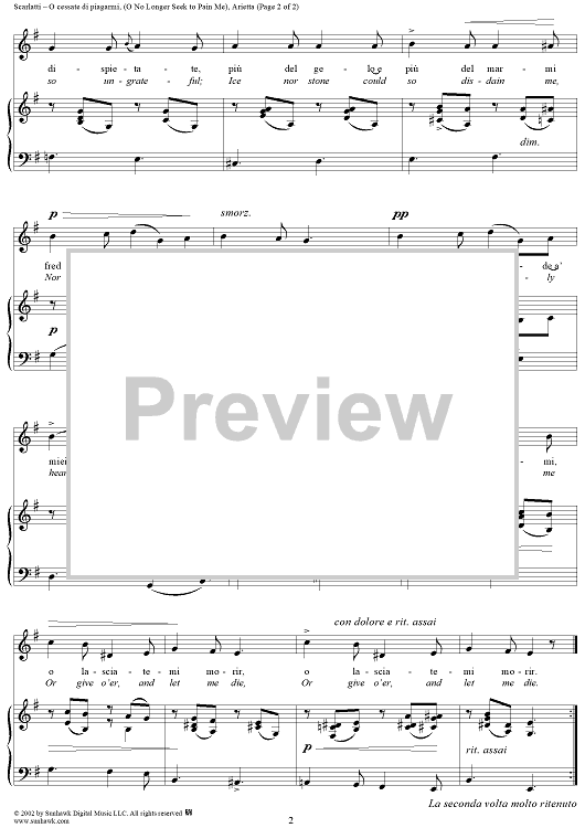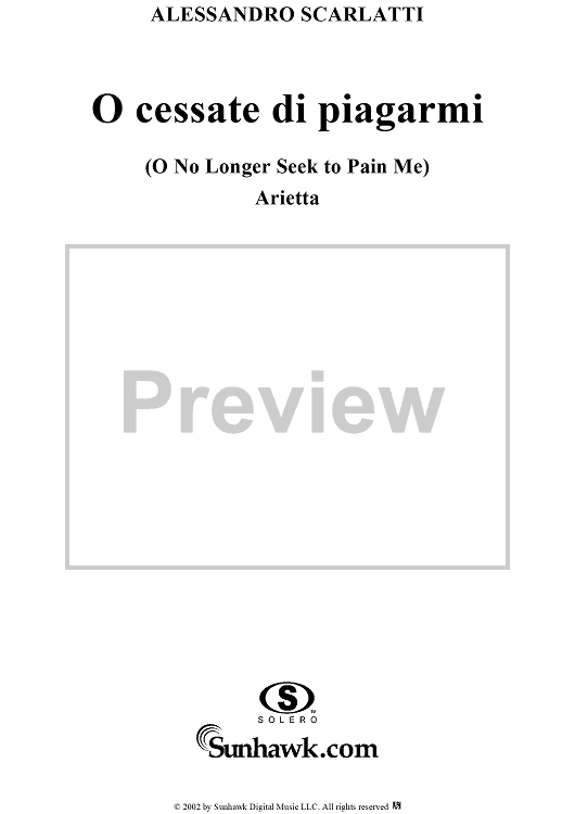 Digital Sheet Music for O Cessate Di Piagarmi by Alessandro Scarlatti scored for Voice/Piano; id:257323