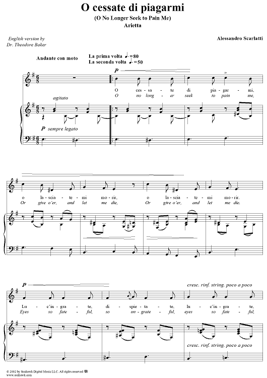 "O Cessate Di Piagarmi" Sheet Music by Alessandro Scarlatti