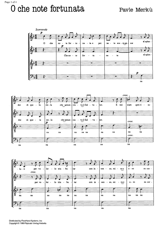 Digital Sheet Music for O che note fortunata by , Pavle Merkù scored for SATB Choir; id:333930