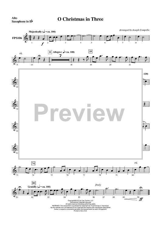 Digital Sheet Music for O Christmas in Three - Alto Sax by Joseph Compello, Traditional Carols scored for Concert Band; id:435871