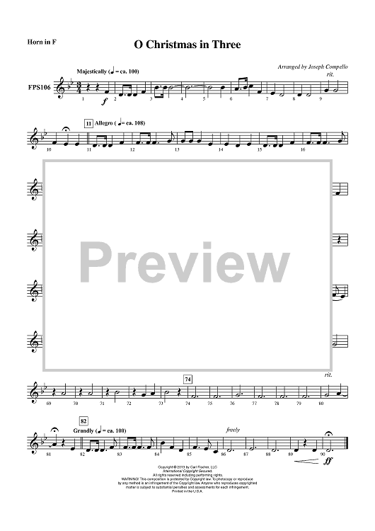 Digital Sheet Music for O Christmas in Three - Horn in F by Joseph Compello, Traditional Carols scored for Concert Band; id:435876