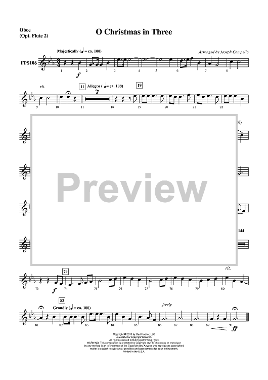 Digital Sheet Music for O Christmas in Three - Oboe (Opt. Flute 2) by Joseph Compello, Traditional Carols scored for Concert Band; id:435867