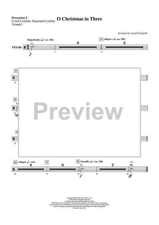Digital Sheet Music for O Christmas in Three - Percussion 2 by Joseph Compello, Traditional Carols scored for Concert Band; id:435883