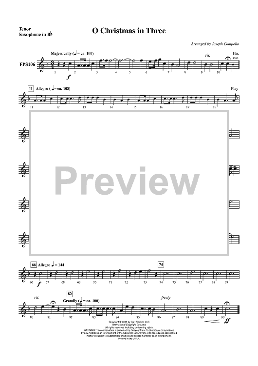 Digital Sheet Music for O Christmas in Three - Tenor Sax by Joseph Compello, Traditional Carols scored for Concert Band; id:435872