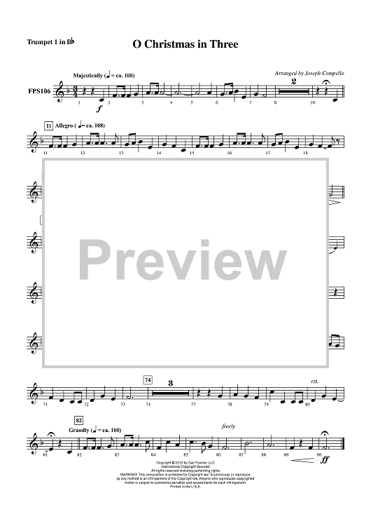 Digital Sheet Music for O Christmas in Three - Trumpet 1 in Bb by Joseph Compello, Traditional Carols scored for Concert Band; id:435874