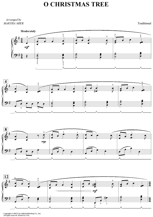Digital Sheet Music for O Christmas Tree by Traditional, Martha Mier scored for Piano; id:463564