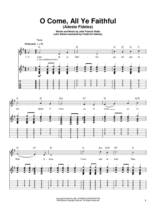 Digital Sheet Music for O Come, All Ye Faithful (Adeste Fideles) by Frederick Oakeley, John Francis Wade scored for Guitar Tab; id:391222