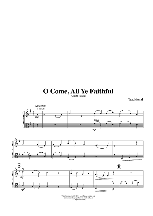 "O Come, All Ye Faithful - Adeste Fideles" Sheet Music by Traditional
