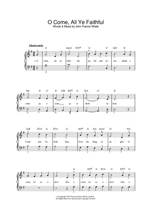 Digital Sheet Music for O Come All Ye Faithful by John Francis Wade scored for Piano/Vocal/Chords; id:386108
